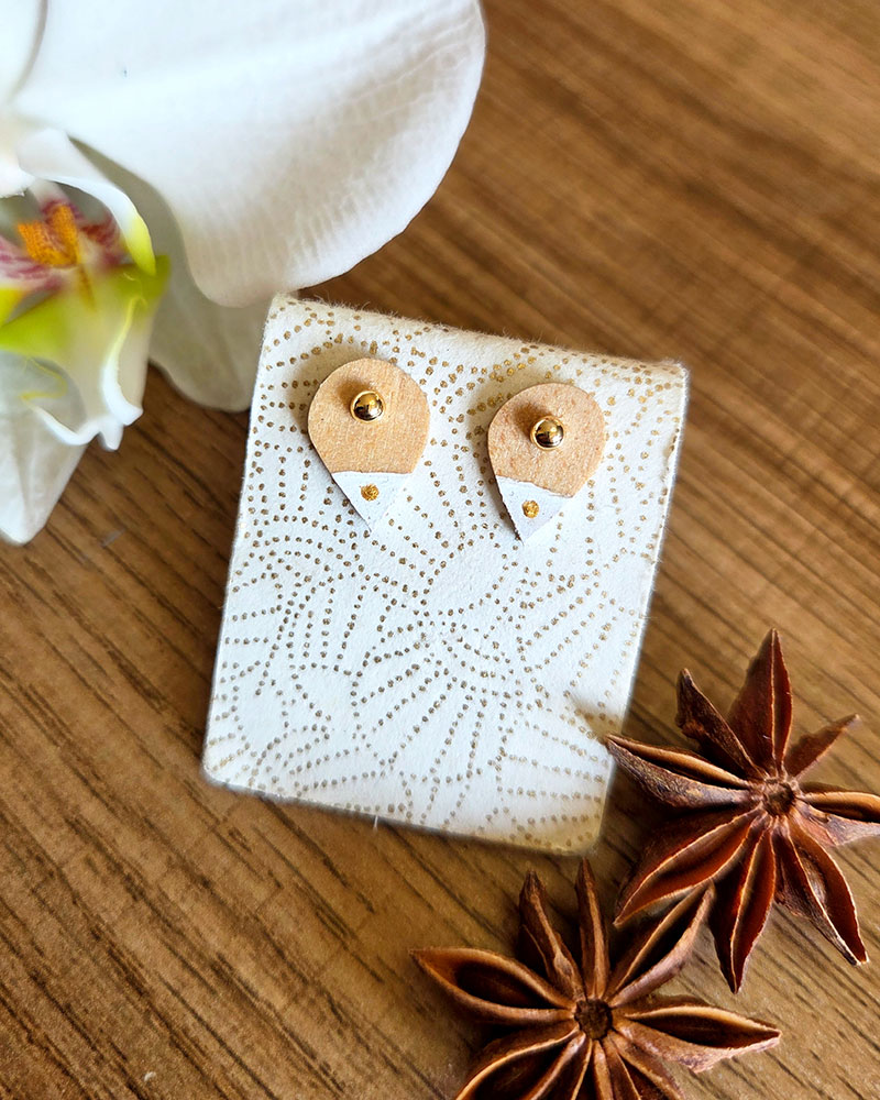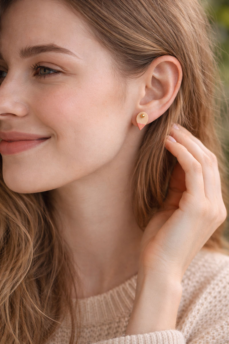 Bien que les boucles d’oreilles clou soient en bois, elles restent extraordinairement légères à porter, grâce à leur taille minimaliste et discrète ainsi qu’à la finesse de leur découpe. Le bois de tilleul, naturellement léger, permet d’obtenir une boucle d’oreille clou confortable, pensée pour être portée toute la journée sans inconfort.
