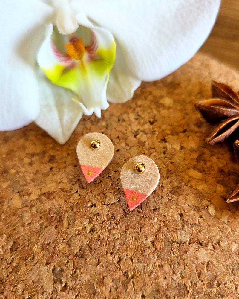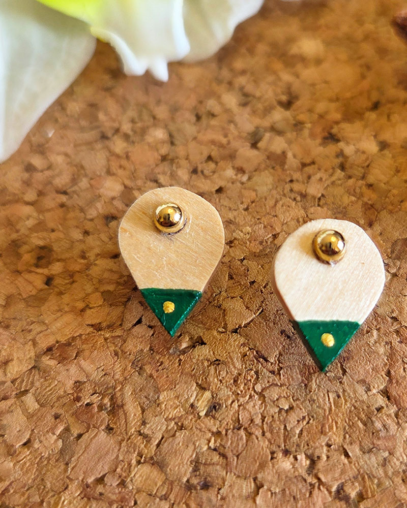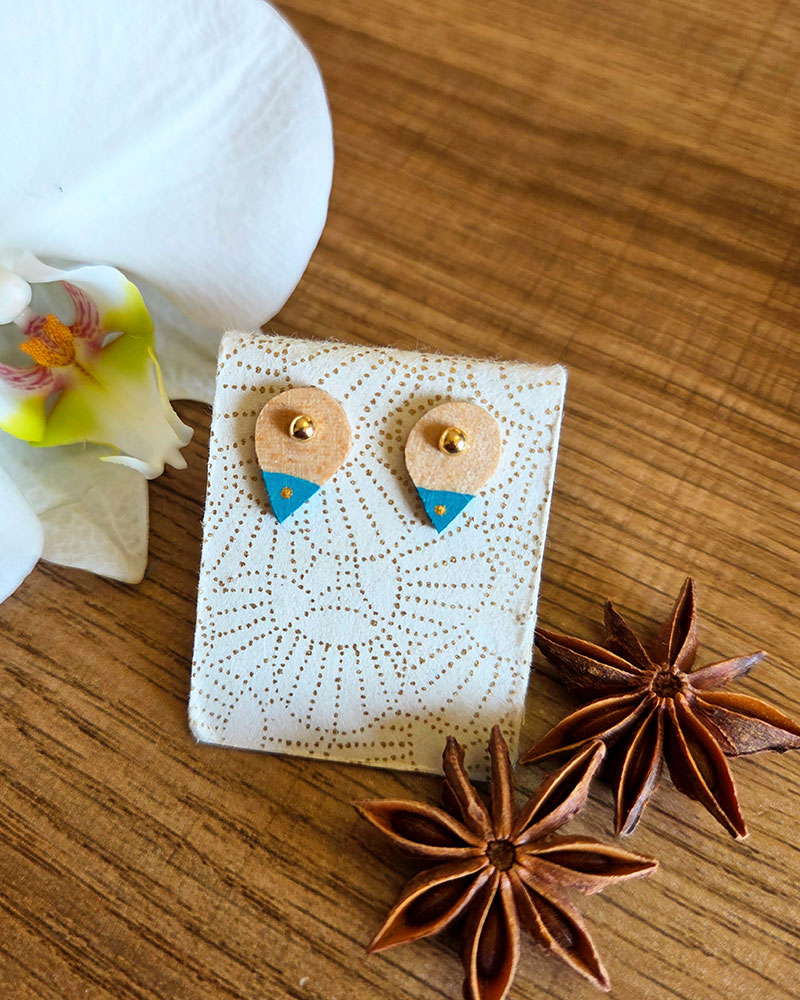 Afin de mettre en valeur nos boucles d’oreilles clou en bois fabriquées artisanalement, nous avons choisi une peinture extra-fine composée d’eau et de résine végétale biosourcée à 95 %. Cette solution, alternative aux peintures issues de la pétrochimie, s’inscrit pleinement dans une démarche responsable, en limitant son impact aussi bien sur l’environnement que sur la santé. C’est également celle qu’on utilise sur tous nos bijoux en bois.