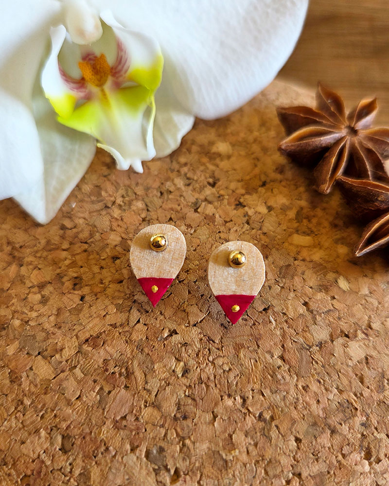 Une boucle d’oreille clou peinte à la main avec une peinture écoresponsable