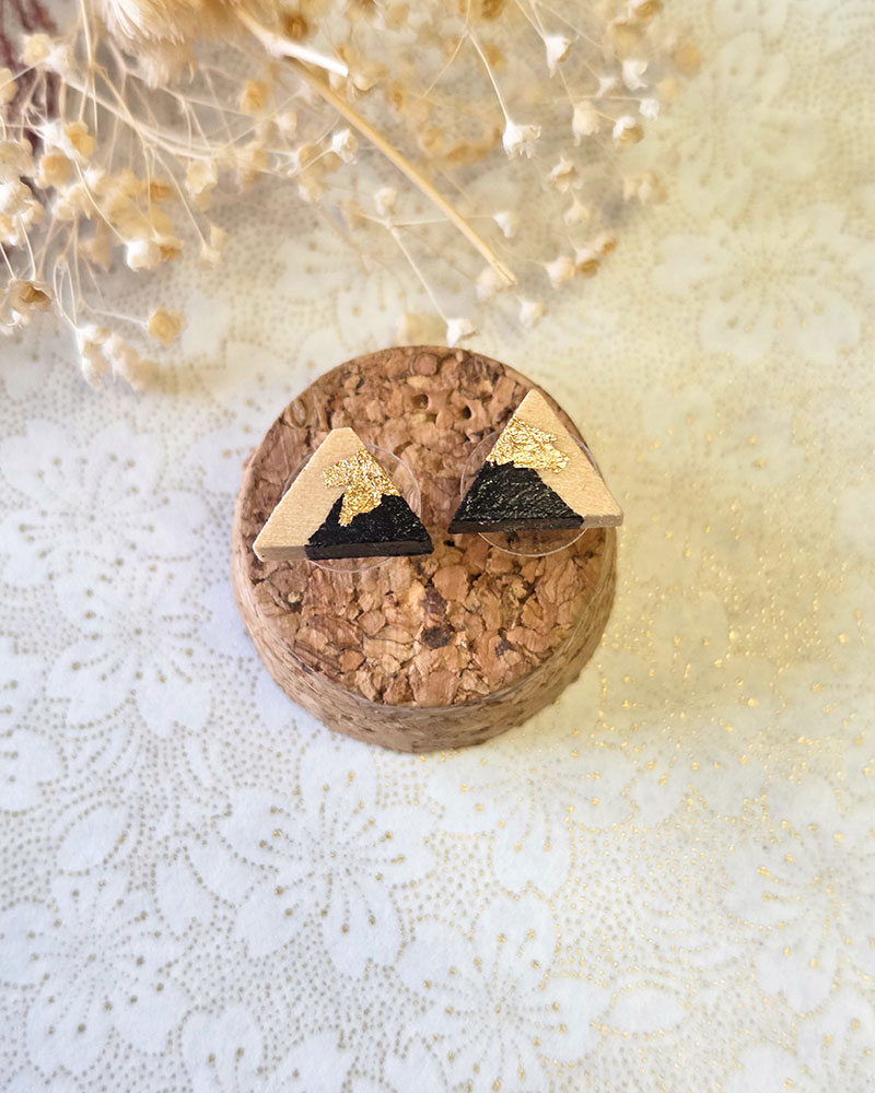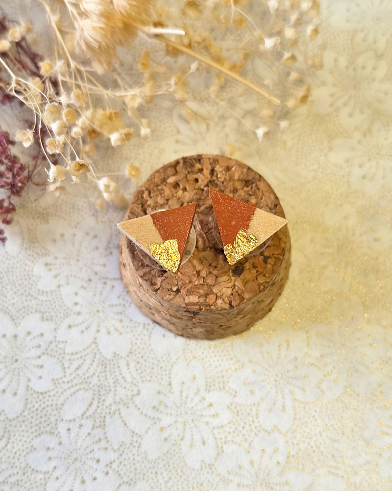 Les boucles d’oreilles puces triangle sont réalisées à partir de bois de tilleul soigneusement sélectionné, découpé avec précision puis finement poncé dans notre atelier de Haute-Savoie. Chaque pièce est ensuite peinte à la main dans des couleurs lumineuses, avant d’être sublimée par l’ajout délicat de feuille d’or, pour apporter éclat et raffinement. Afin d’assurer une bonne tenue dans le temps, l’ensemble du bijou en bois est recouvert d’un vernis hypoallergénique, spécialement conçu pour le protéger durablement. Ce procédé de fabrication est identique pour tous nos bijoux en bois, y compris nos bracelets rond et feuille d’or.